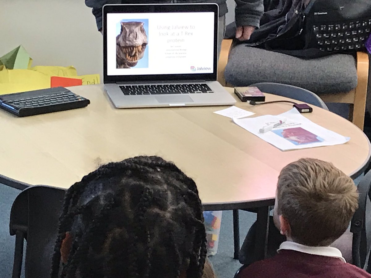 Jalview’s newest member Ben Soares visited St Columba’s RC Primary School in Cupar on Tuesday 2nd April. Ben spoke to around fifty 8-9-year-olds in the P4 and P4/5 classes about computers, coding and computational biology. Ben fired up Jalview to compare a Tyrannosaurus Rex protein in the PDB with those from other species.